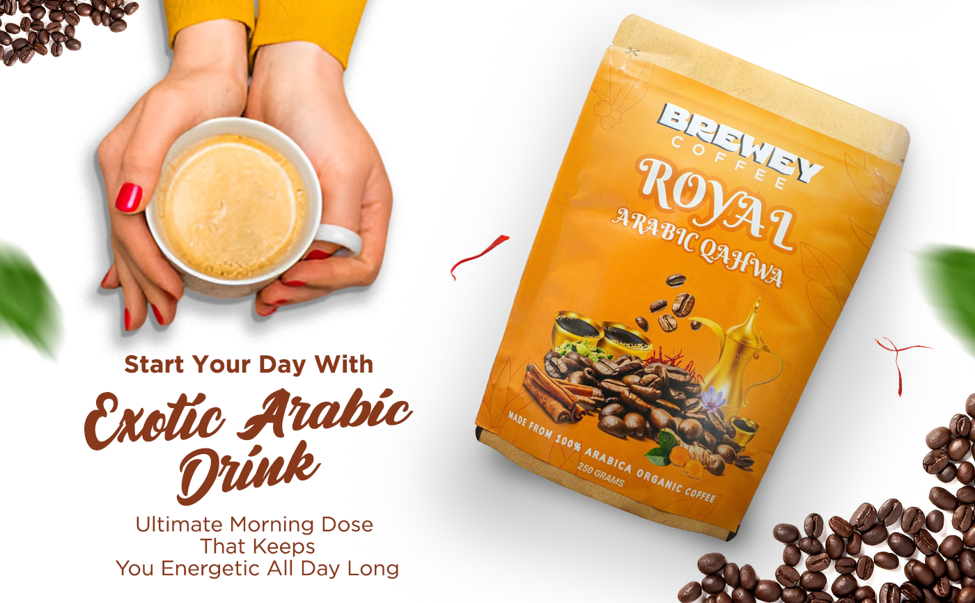 Savor the essence of tradition and well-being with every sip of Brewey Coffees Arabic Qahwa. Immerse yourself in the rich heritage of Arabic coffee, elevated to a new level of purity and goodness. Experience the fusion of authentic flavors and health benefits, making this brew a must-have for those seeking a delightful and wholesome coffee experience.